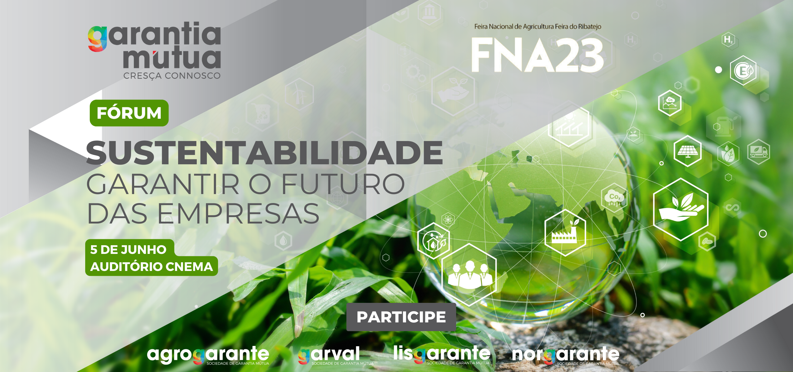 Participe! As inscrições e entrada no recinto são gratuitas.No dia em que se celebra o Dia Mundial do Ambiente, a Garantia Mútua, no seu apoio às empresas, convida os empresários a participarem neste fórum e ficarem a conhecer melhor os desafios e soluções que lhes permitam implementar os seus projetos de sustentabilidade.